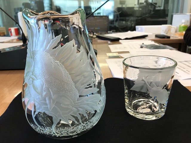今日はサンドブラスト工芸作家の東條裕志さんにお越しいただきました。砂を吹き付けて作るガラス細工、サンドブラスト。東條さんの作品にはカブトムシが彫られています、子どもの頃に大好きだった虫取りをヒントにされているそうです。