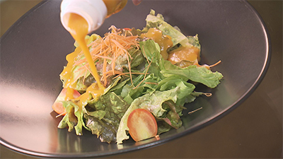 グラッツェミーレのドレッシングは、野菜と、わずかなオイルでシェフが手作りで作っております。足りないぶんの野菜は、そのままドレッシングでたべる。「野菜で野菜を食べる。」をコンセプトとした商品です。どうすればもっと子どもたちに野菜を食べてもらえるか、たどり着いたのがこのドレッシングでした。